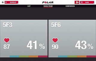 ハートマークの下の数字が心拍数。%は運動強度。