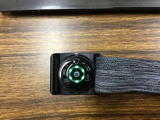 緑のLEDライトが光っている部分がセンサーになっていて、心拍数を計測できるんです。