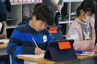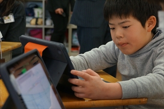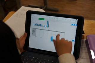 タブレットでグラフを作成すると,カラフルで楽しいですよね。自分で予想を立てて,結果をグラフから読み取ろうというもの。真剣な表情でグラフとにらめっこ。