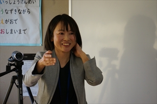 笑顔で授業を進めるのは2年生担任。2年生の特別活動の学習にメディアバランスを取り入れる挑戦をしてくれました。