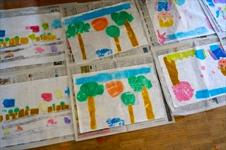 なんと鮮やかで,ほんわかとした感じの図工作品。2年生らしい,いい意味でのばくっとした表現が温かみを加えているように思います。
