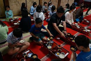 写真は,朝づとめの様子です。全員,お焼香をさせていただきました。