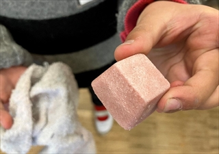 中には,塩を入れすぎてなんだか焼き菓子みたいになっているものもありました。手には雑巾を持っていますが,言わなければわかりません(笑)。
