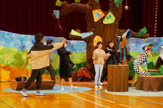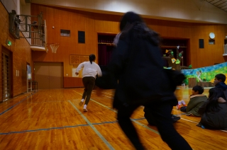 そのような劇をする側に立つということが,今回の劇団うりんこの演劇でも実現しました。56Fの子供たちは,予めリハで確かめていたタイミングになると元気よく飛び出して行きました。