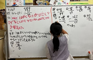 〔めあて・考え方・練習問題・(消しちゃったけど)振り返りもよく板書にまとめるようになりました〕