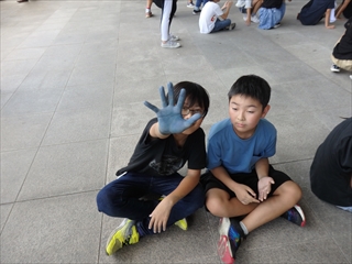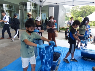 和歌山青年会議所主催の藍染体験が和歌山県立近代美術館で開催され、5・6年生が参加しました。他校の児童との交流も兼ねて、グループに分かれて藍染体験、アート体験、美術館鑑賞をしました。