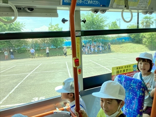最後にバスの職員の方にみんなでお礼を言ってバスと一緒に記念撮影。プレンゼントももらいました!