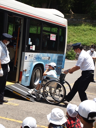 実際に日直さんを車いすにのせて、バスに乗り降りする様子を見せてもらいました。