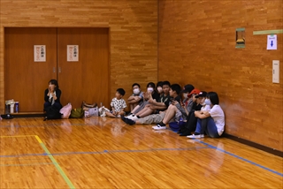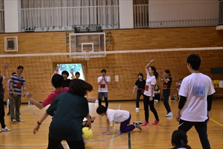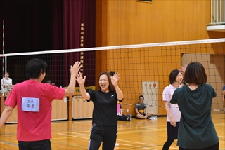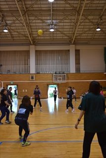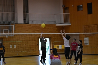 ソフトバレーボールは体育館にて、試合が立て込み休みなく、みんなヘトヘト…