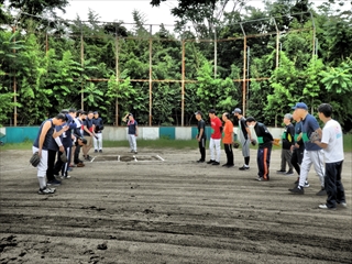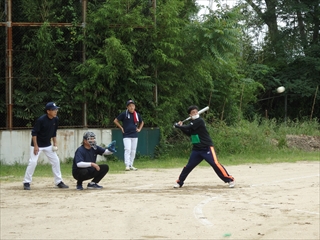 ソフトボールは先生チームも小学校お父さんチームもチームワークはバッチリ!素晴らしいプレーはたたえ合い、ミスは声を出してカバーし合っていました。