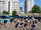 体をしっかり水にならしましょう。少しずつならして頭も背中もがまんがまん。