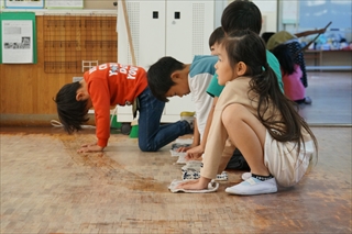 1Bでは,机の脚に挟まったごみをほじほじ。