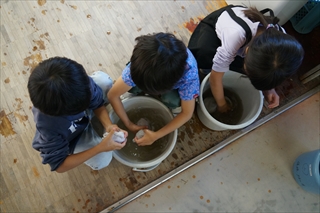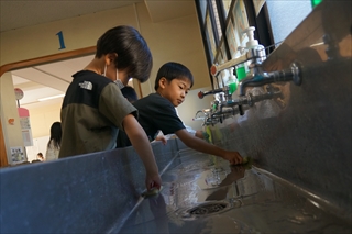 流し場もごしごし。冬にはつらいけど,冷たい水に触れるのも経験ですね(o^ー’)b