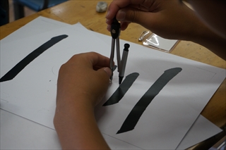 書写の授業で,それぞれの画の間隔が同じだという話。この子は,コンパスを持ち出して,それを確かめるという。なかなか工学的な感じで親近感がわく。書写も算数か~(;゚△゚)スゴイデスネ。
