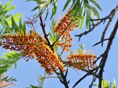 オーストラリア原産の常緑樹。下を向いて広げた枝葉が「天女が纏う羽衣」に似ていることから、日本でこの名前がつけられたといわれています。