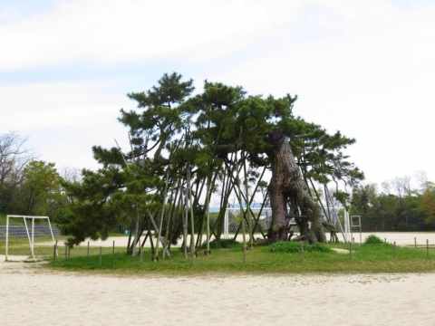 しかし、次々にマツクイムシ被害などにより枯死していきます。1996年12月、小学校砂場北側にあった「根上り松」がマツクイムシ被害により枯死し伐採され、現存するのは運動場に位置する1本のみとなりました。この「根上り松」の根上りの高さは3.5m、根回りは8mもあり、樹齢は400年~500年と言われています。
