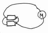 分類したものをながめていると,F君がつぶやきました。「つなぎ方によって,速さが違うかもしれんな。」そんなつぶやきを課題とし,みんなで予想を立てました。はたして,速く(強く)回せるつなぎ方はどれか?…実は,全部そのつもりで回路図をかいたので,どれも速くなくちゃ困るのですが,そんなことを思いつくことも,疑いもせずに一生懸命に予想を立てていました。とっても素直な子どもたちです。