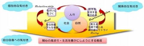 実際に体験しながら思考や表現を繰り返し、改善策や願いを生む活動を通して振り返り、省察性の基礎を養う。