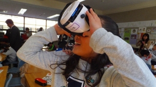これにより一気に盛り上がります。真剣さも,表情も一変します。子どもたちは,すでにVRを体験しているのでVR自体への驚きは少なかったと思いますが,そこにある建物が多い街の様子と自然いっぱいの街の様子に,様々な声を上げていました。見てみたかった街や知らない街でも,このようにしてじっくりと上下左右前後と見ることで,様々な気づきがあります。ハルカスはきれいですが,足元に空き缶が…。自然はきれいですが,コンビニもありません。そんな気付きが出されるようになりました。