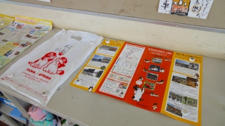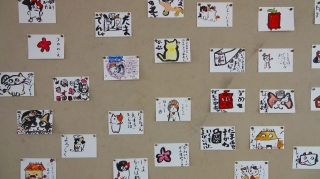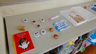 また,教室後方のロッカーに展示場を設けました。お土産展示コーナー・パンフレット展示コーナー・貴志川線絵手紙展示コーナーです。