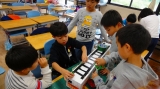「先生!家で考えて来ていい?ノート持って帰るで。」「材料,持って帰って作ろ~っと!」「もっとアイデイア書いてもいい?」と,一生懸命な言葉と子どもたちの熱意がとても嬉しいです。下の写真のように,下校時刻ギリギリまで一生懸命作っている様子も見られました。