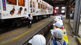 車両基地では,おも電が4年に一度の定期点検でバラバラにされていたり,職場体験の附中生がマナーについて説明してくれたり…。様々な体験をしました。