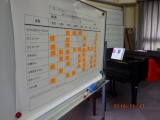 使ったのは,拡大ワークシートです。付箋を貼りながらグループで考え始めました。