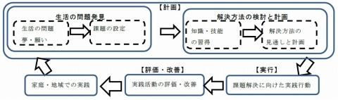 生活をよりよくしようと工夫する資質・能力を育成するためには,生活事象を,協力・協働,健康・快適・安全,生活文化の継承・創造,持続可能な社会の構築(家庭科の見方・考え方)を働かせ,衣食住などに関する実践的・体験的な活動を通して,主体的・対話的な学びを創る必要がある。